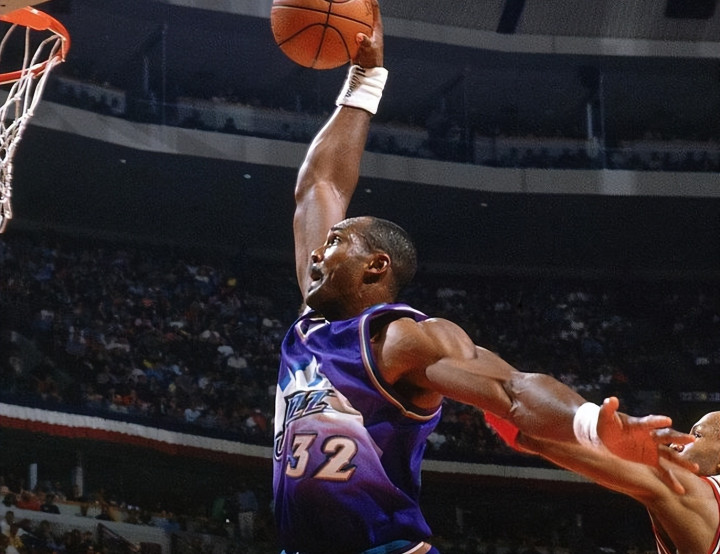 1985年马龙在首轮第13顺位被爵士选中,新秀赛季他就坐稳了轮换,场均也能得到14.9分8.9篮板2.9助攻1.3抢断,在用自己表现赢得了球队信任后,马龙立马就又被扶正为了球队绝对核心,随后两个赛季,他的场均数据就迅速涨到了场均20+10、场均25+10,因此他也成为了联盟当时最好的大前锋之一。